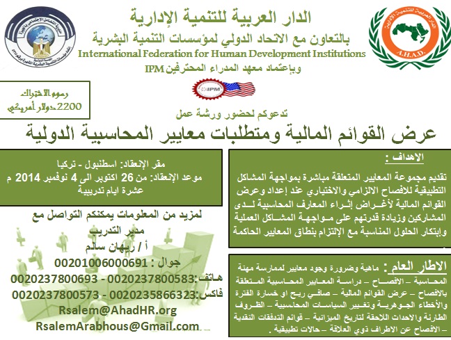 ورشة عمل: عرض القوائم المالية ومتطلبات معايير المحاسبة الدولية للفترة من 26 اكتوبر
